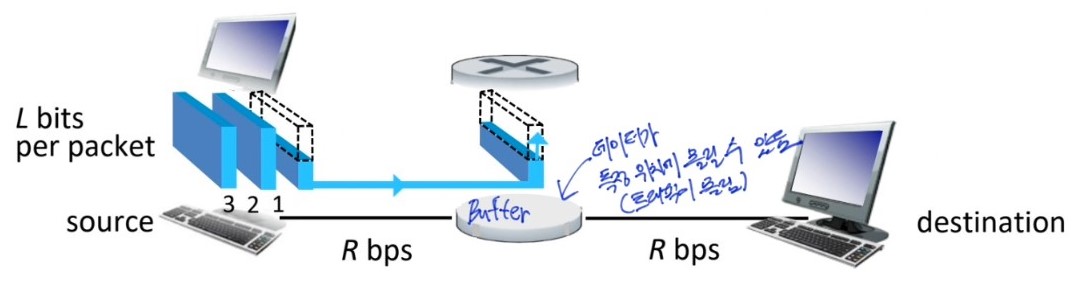 - Store and forward : 모든 packet은 다음 링크로 전송되기 전에 router에 반드시 도착한다.