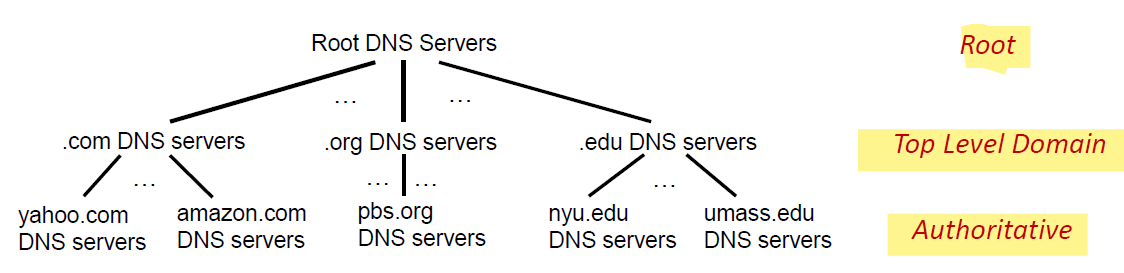 - Authoritative Server : 우리가 실제로 쓰는 domain들. ex) google.com, naver.com, kookmin.ac.kr, etc.
