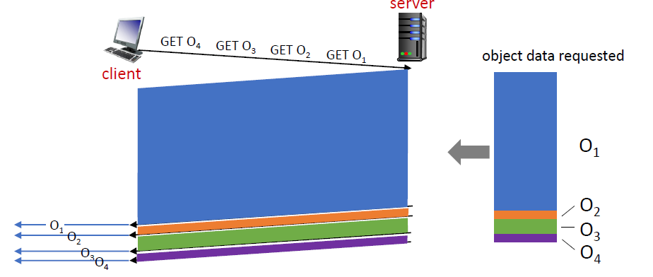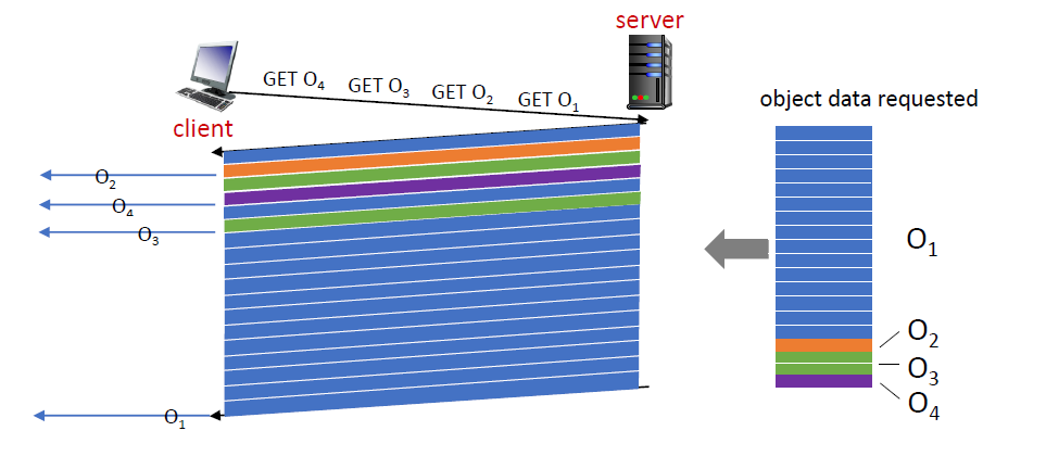 - HTTP 1.1 : FCFS(FIFO) 구조라서 큰 파일이 먼저 가면 나머지 파일이 기다려야한다. (Head-Of-Line Blocking(HOLB))