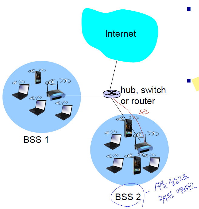 Basic Service Set(BSS) = 셀(cell), 무선 연결 집합?