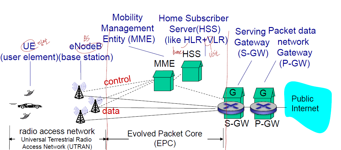 - air-interface : 모바일과 BS 사이의 물리적, 링크 계층 프로토콜