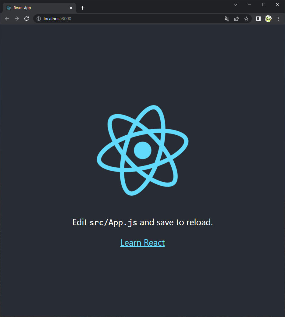 설치하자마자 나온 화면과 달리 화면 중앙에 Hello React를 찍어주는 것을 확인 할 수 있다.